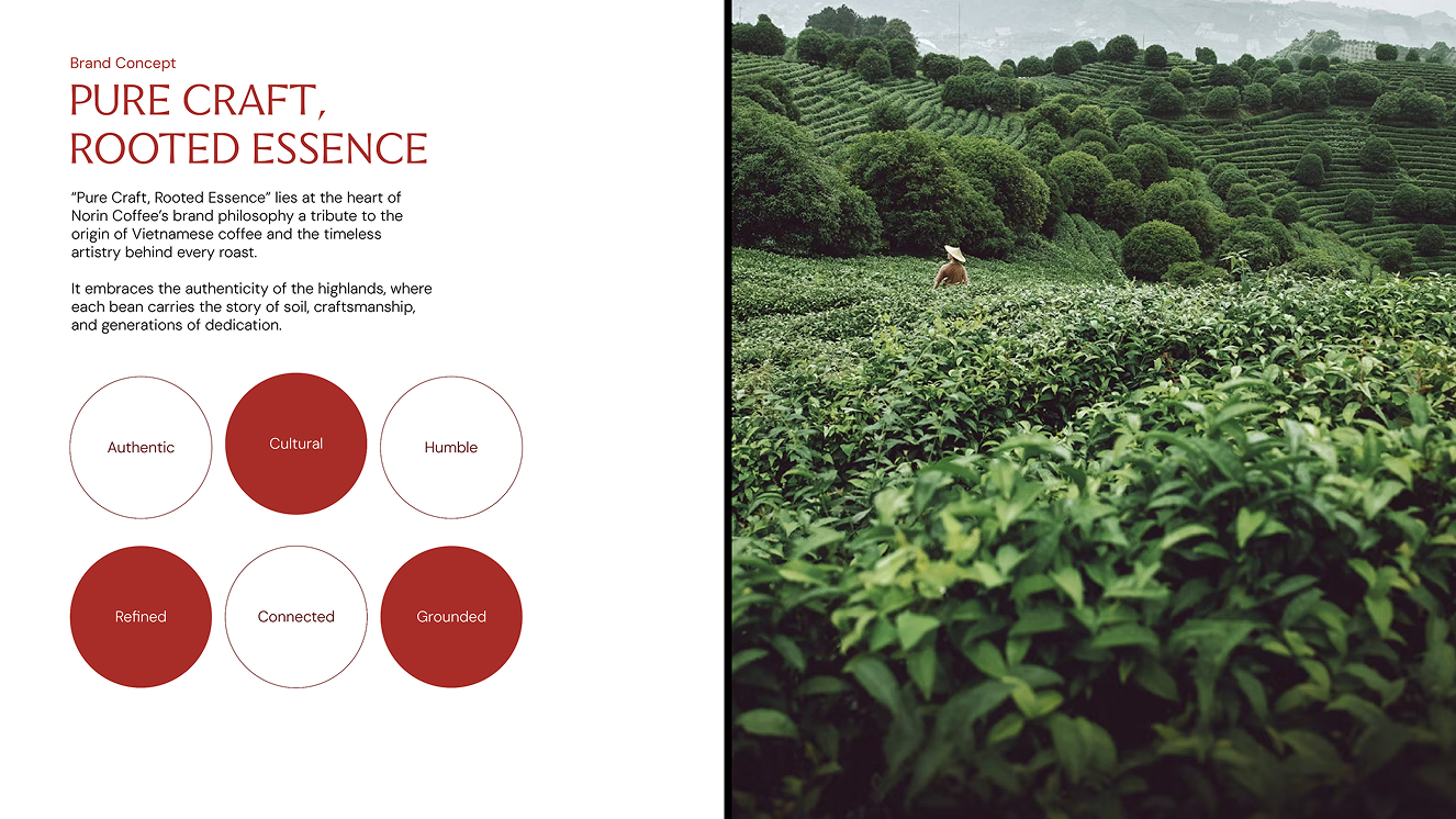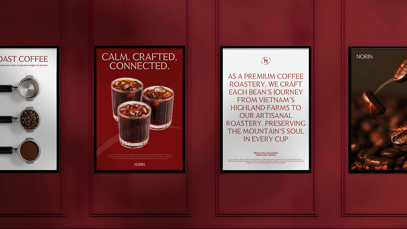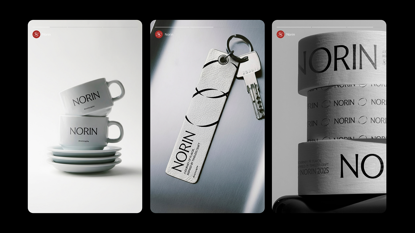 The typography system emphasizes minimalism while maintaining a distinctive personality, helping the brand feel contemporary yet inviting. Its versatility ensures consistency across packaging and marketing materials, reinforcing a cohesive visual language that reflects Norin Coffee’s refined and friendly brand spirit.
