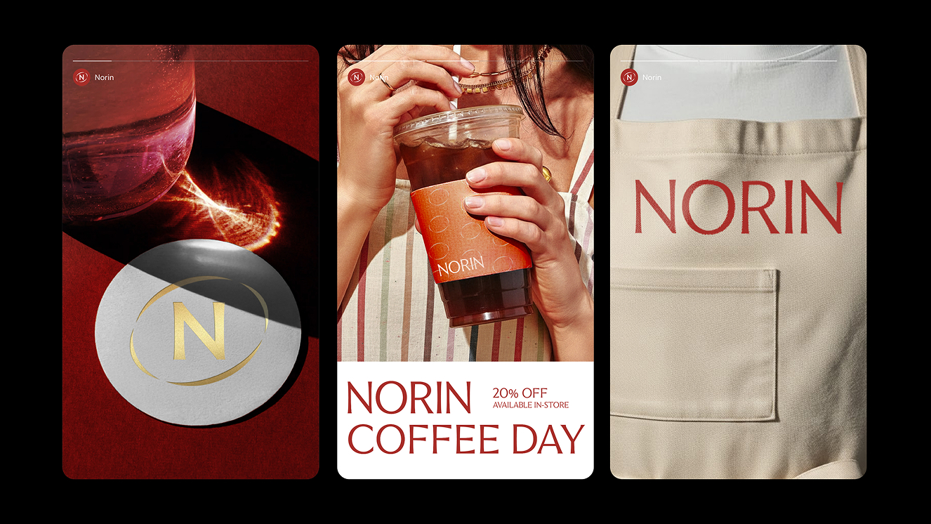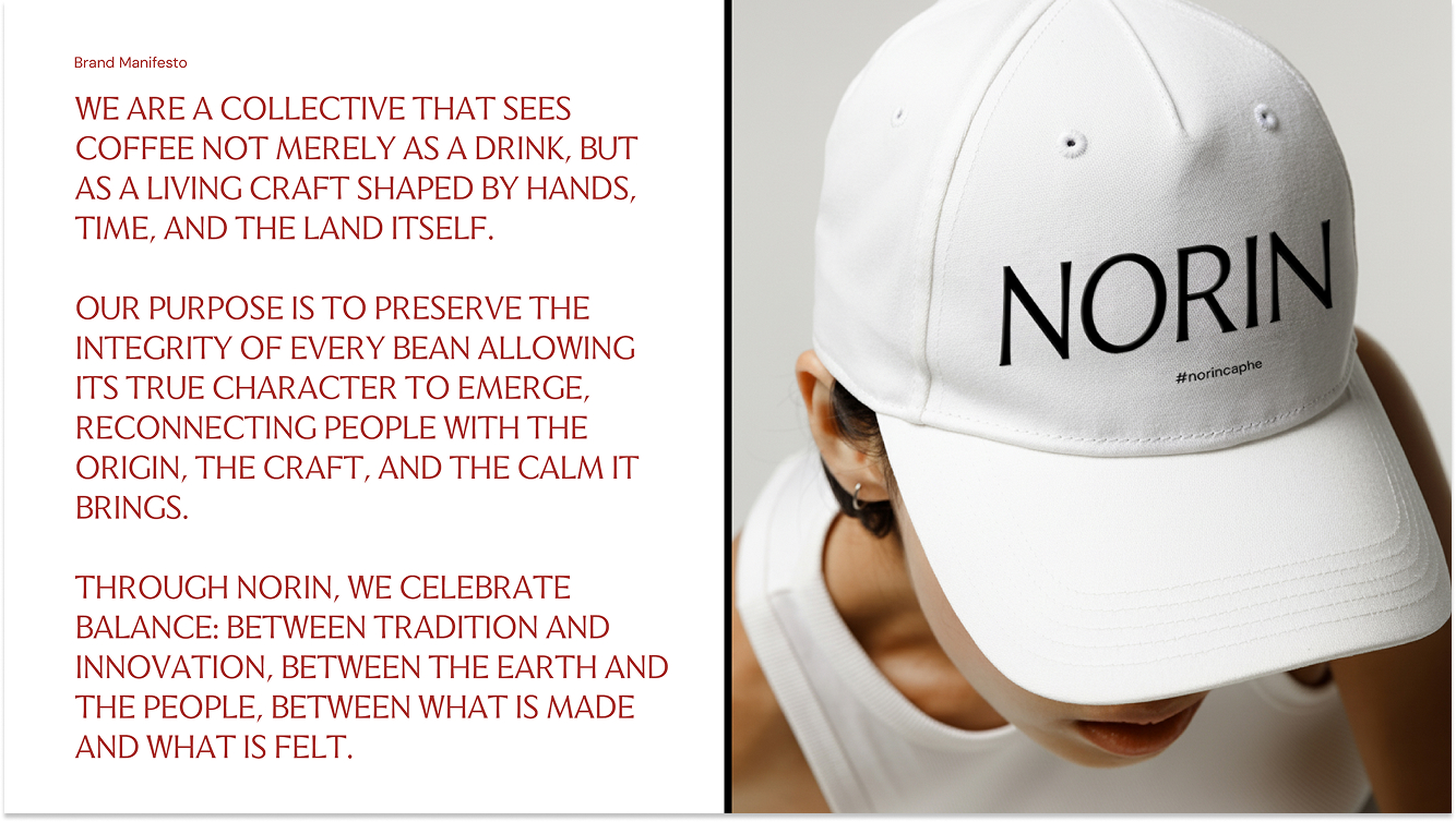 The typeface used in Norin Coffee’s visual identity is carefully selected to balance modern simplicity with a warm, approachable character. Clean letterforms and well-proportioned spacing create a sense of clarity and readability, allowing the brand to communicate confidently across different touchpoints.